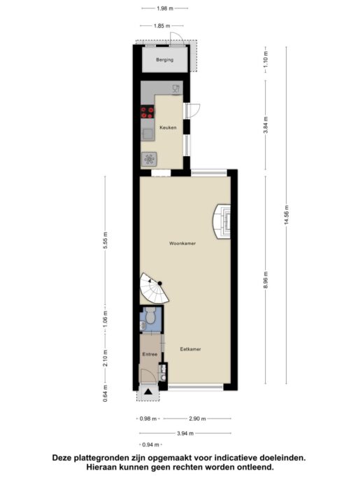 Begane grond: Je komt binnen in de hal met meterkast, toiletruimte en toegang tot de woonkamer. De knusse woonkamer biedt voldoende ruimte voor een apart eet- en zitgedeelte. De keuken is voorzien van een kookplaat, afzuigkap, oven en vaatwasser. Vanuit de keuken heb je toegang tot de binnenplaats met berging. Hier is ruime genoeg om een fijne buitenplek te creëren.