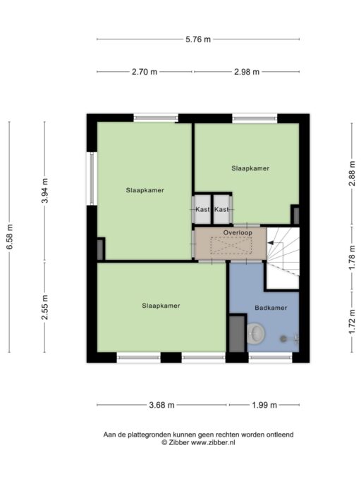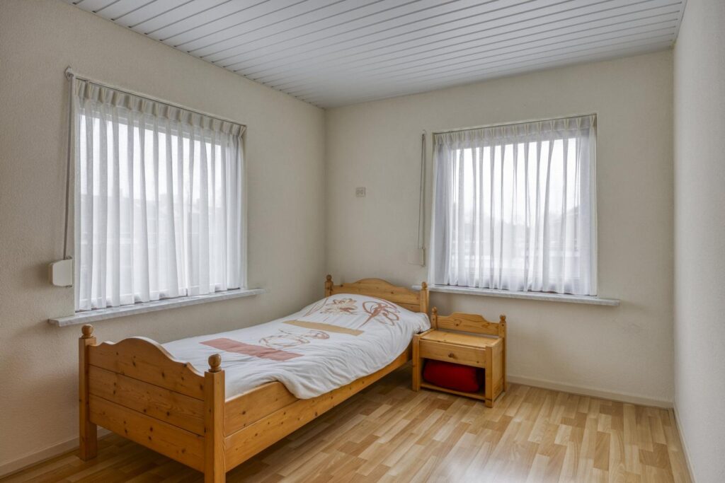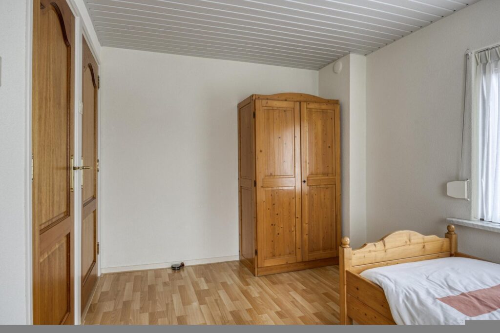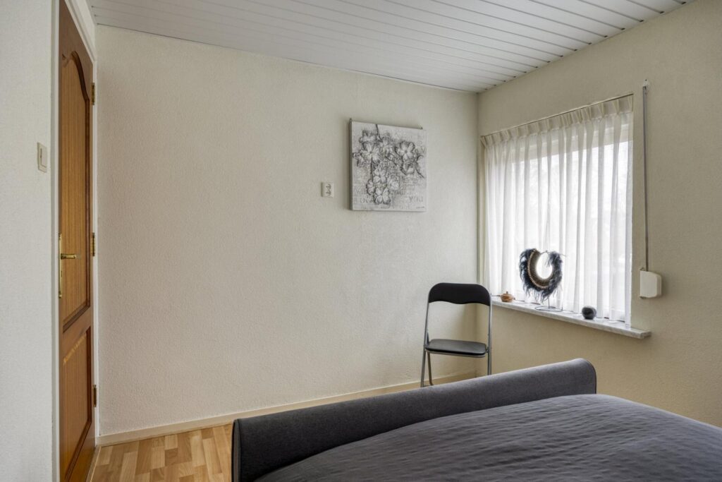 Op de eerste verdieping vind je de overloop, drie slaapkamers en de badkamer met douche en wastafel. Een fijne verdieping voor starters of jonge gezinnen, met ook mogelijkheden voor een werk- of hobbykamer.