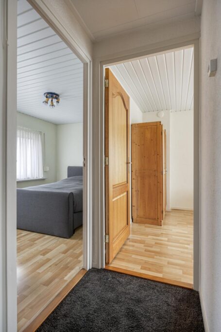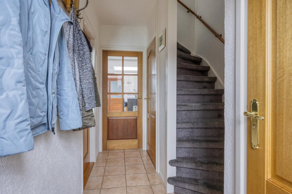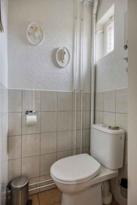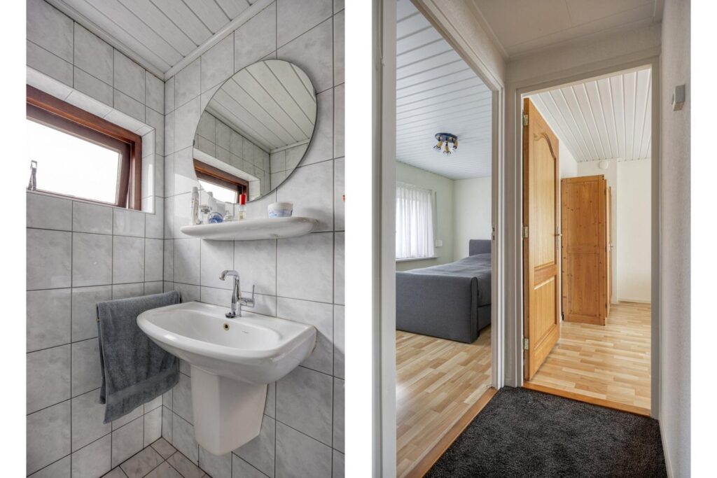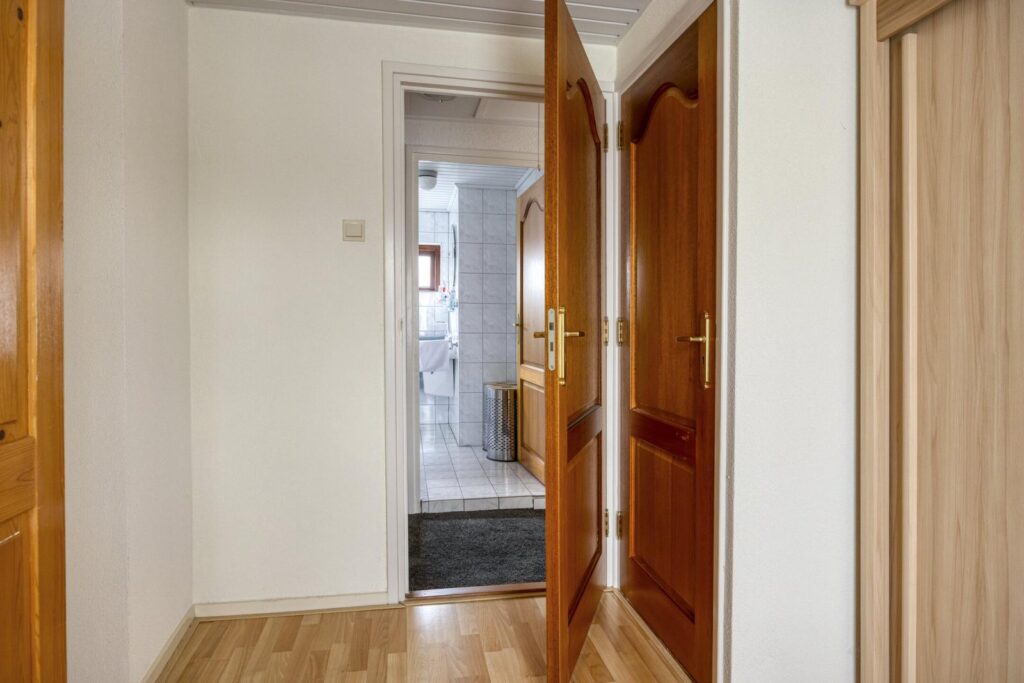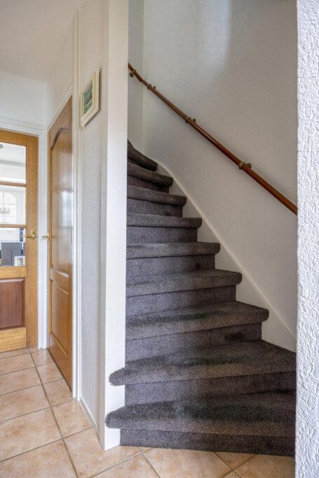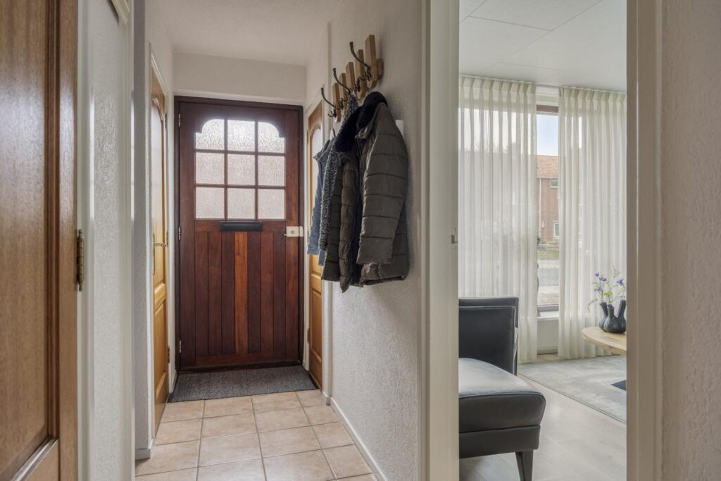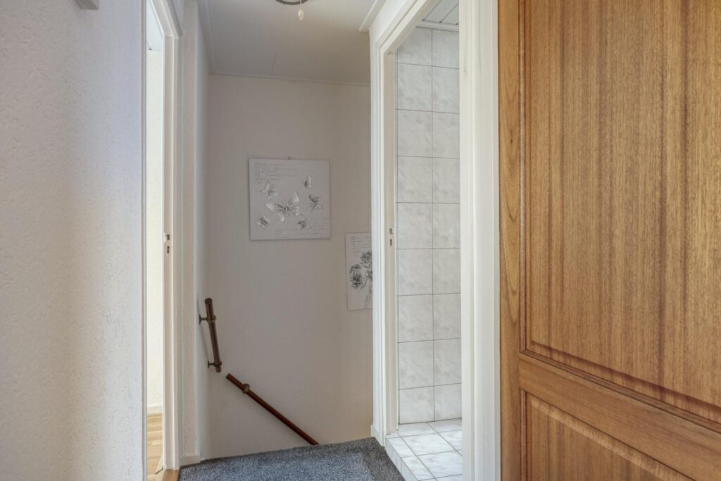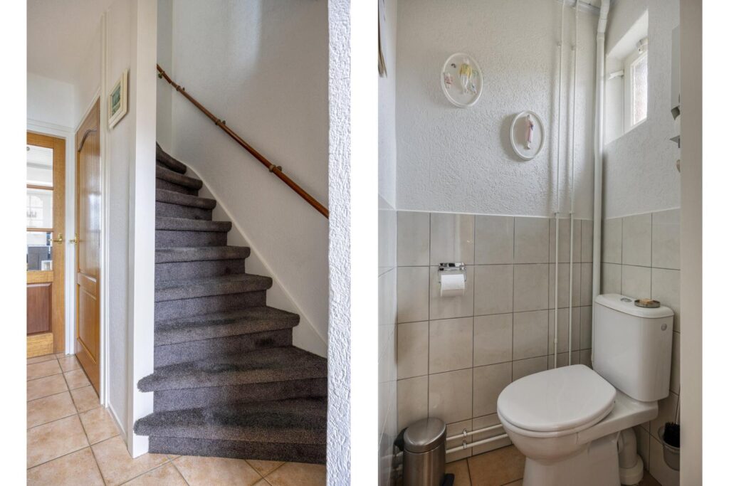 Je komt binnen in de hal met meterkast, trapopgang en toilet. Vanuit de hal is ook de kleine, compacte kelder bereikbaar: ideaal voor voorraad of extra opslagruimte.