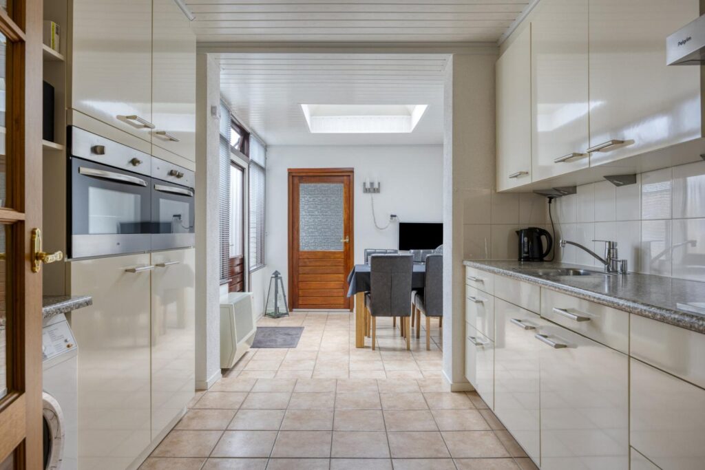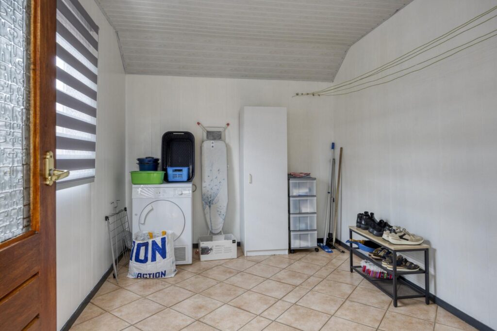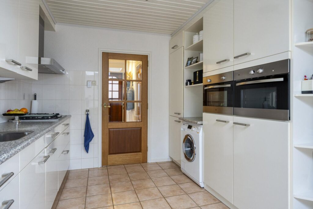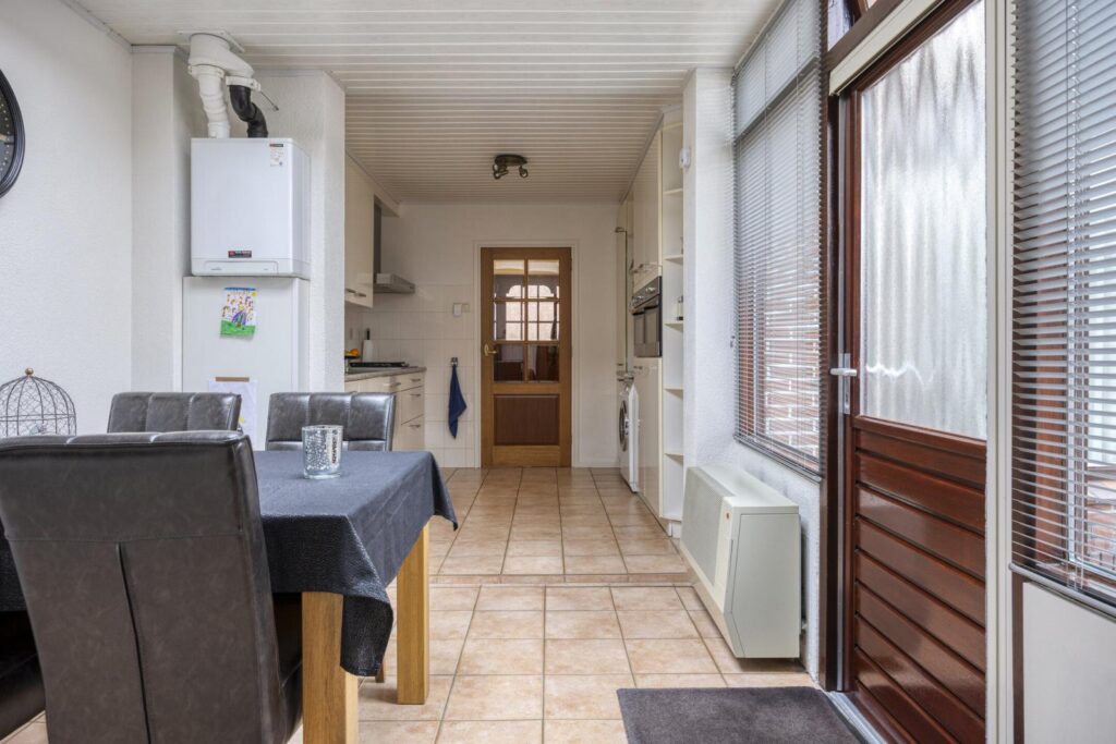 Tussen de keuken en de tuin ligt de praktische bijkeuken. Een fijne extra ruimte voor witgoed, voorraad, extra koelkast/vriezer of gewoon alles wat je liever niet in het zicht hebt.