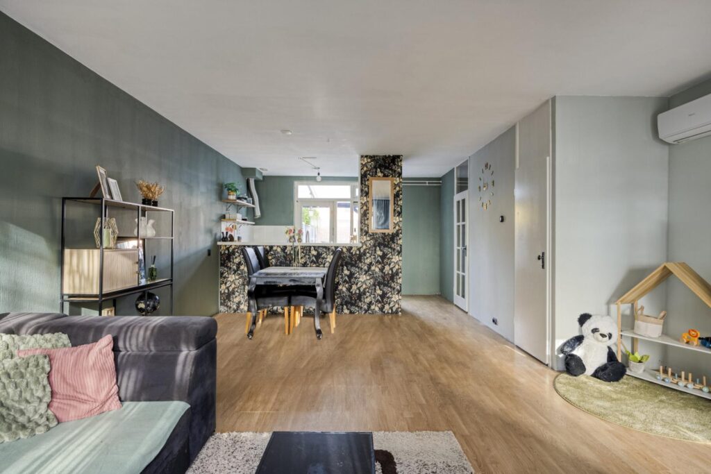 Binnenkomend ervaar je direct de fijne lichtinval in de woning. De lichte woonkamer met grote ramen zorgt voor een prettige sfeer, terwijl de keuken in verbinding staat met de woonkamer.