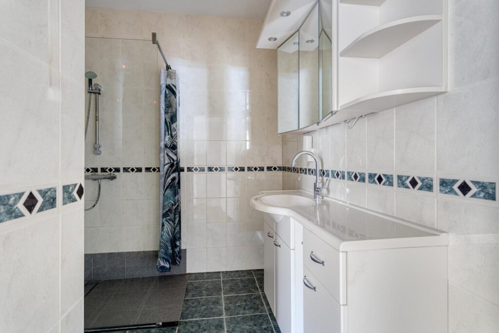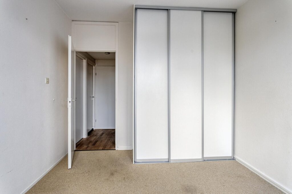 Het appartement heeft twee ruime slaapkamers, waarvan de grootste is voorzien van een praktische vaste kastenwand. De badkamer is volledig betegeld en uitgerust met een inloopdouche, wastafelmeubel en kastruimte. Het toilet bevindt zich apart.